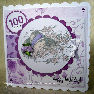 Here's the second 100th birthday card that I was asked to make. I did mean to upload it earlier but its been a busy week. My youngest son is going to high school next year and so we are having to go to the school open evenings to pick which schools we want to apply to - another 2 or 3 to visit next week and I'm exhausted already!